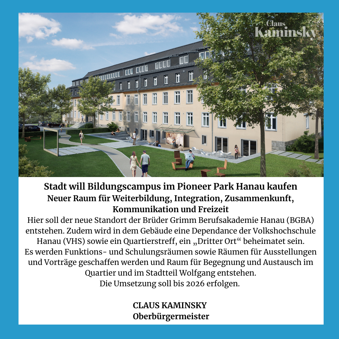 Gleichwohl hat die Stadt Hanau vor kurzem ihren Erstzugriff auf das Areal erklärt und damit ihren Willen bekundet, dass Areal zu entwickeln. „Es kann nicht sein, dass wir bei all der Wohnungsknappheit gut erhaltene Wohngebäude abreißen müssen!“, sagt Oberbürgermeister Claus Kaminsky und fordert eine tabulose Inventur der bau- und immissionsschutzrechtlichen Regelwerke. „Wir brauchen mehr Planungshoheit. Die Städte im Ballungsraum müssen in der angespannten Lage auf dem Wohnungsmarkt selbst entscheiden können, an welchen Stellen eine Wohngebietsentwicklung als sinnvoll erachtet wird!“, so Kaminsky.