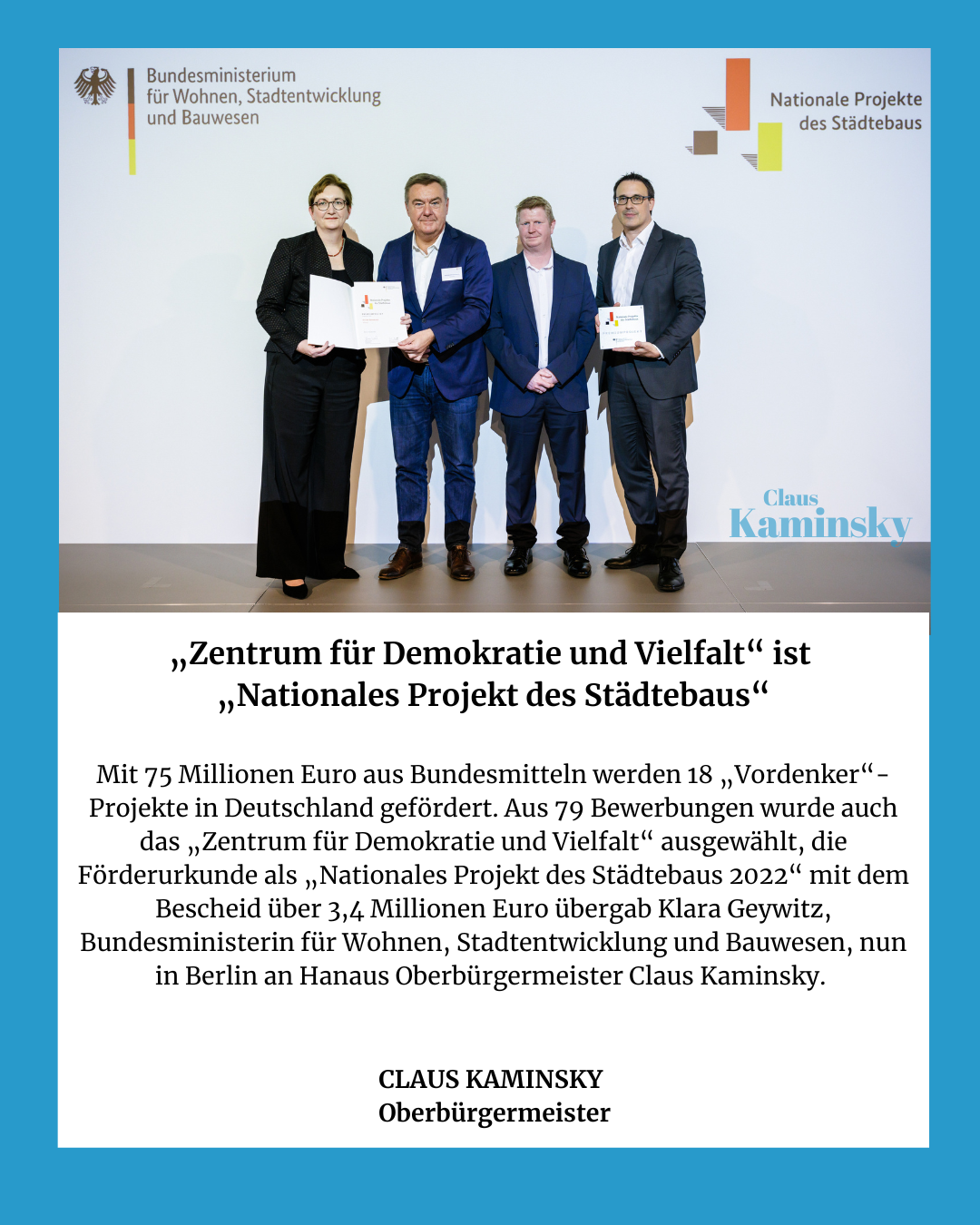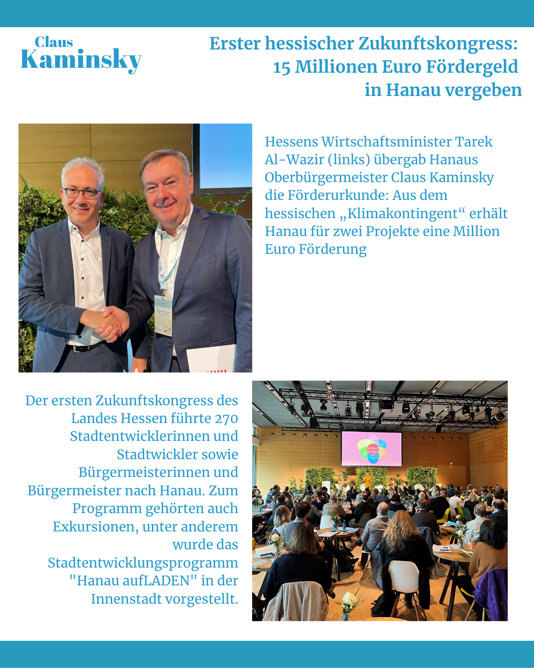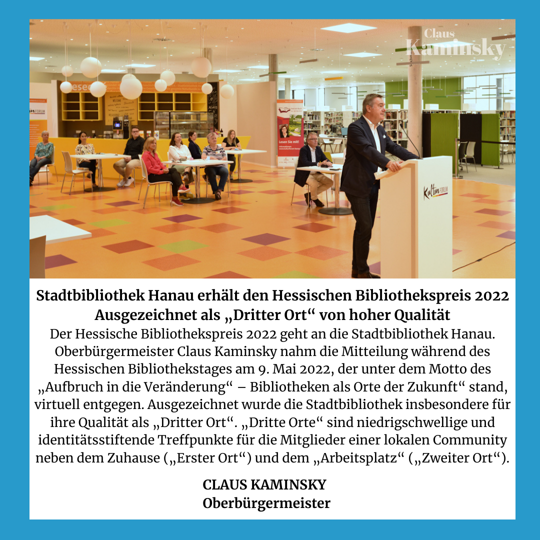 „Das ist eine klare Bestätigung für unser konzentriertes Handeln für unsere Stadt, das ist ein Schub für unsere Innenstadt, ein Schub für Hanau“, freut sich Oberbürgermeister Claus Kaminsky über die jetzt zugesagte Förderung aus dem Bundesprogramm „Zukunftsfähige Innenstädte und Zentren“: „Unsere Stadt bekommt bis zu 3,75 Millionen Euro, um das Stadtentwicklungsprogramm Hanau aufLADEN fortzuführen. Diese Summe wird uns dabei helfen, bereits laufende Maßnahmen und Projekte zu verstetigen und die Herausforderungen einer zukunftsfähigen Stadtentwicklung zu anzupacken.“ ...