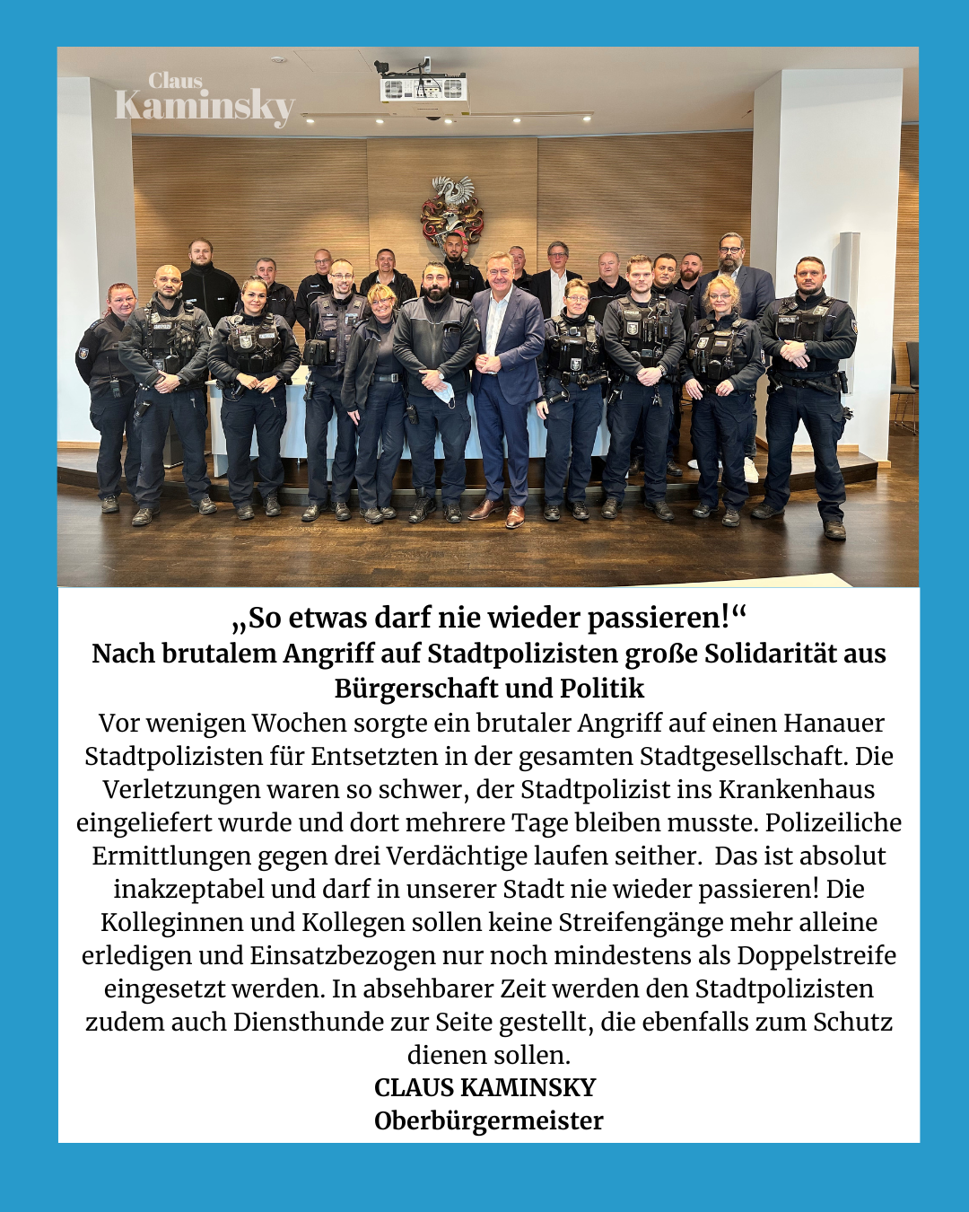 „Durch die Größe unserer Stadt und den Sonderstatus, den wir seit Gründung des Main-Kinzig-Kreis haben, erfüllen wir jetzt bereits Aufgaben einer kreisfreien Stadt. Diese Aufgaben – von uunter anderem der Bauaufsicht über das Jugendamt, die Schulträgerschaft bis hin zur Aufstellung unserer Wirtschaftsförderung – erfüllen wir unbestritten erfolgreich und wirtschaftlich. Dies wird insbesondere durch die Nähe zu den Problemen und die Nähe zu den Menschen möglich“, so Claus Kaminsky.