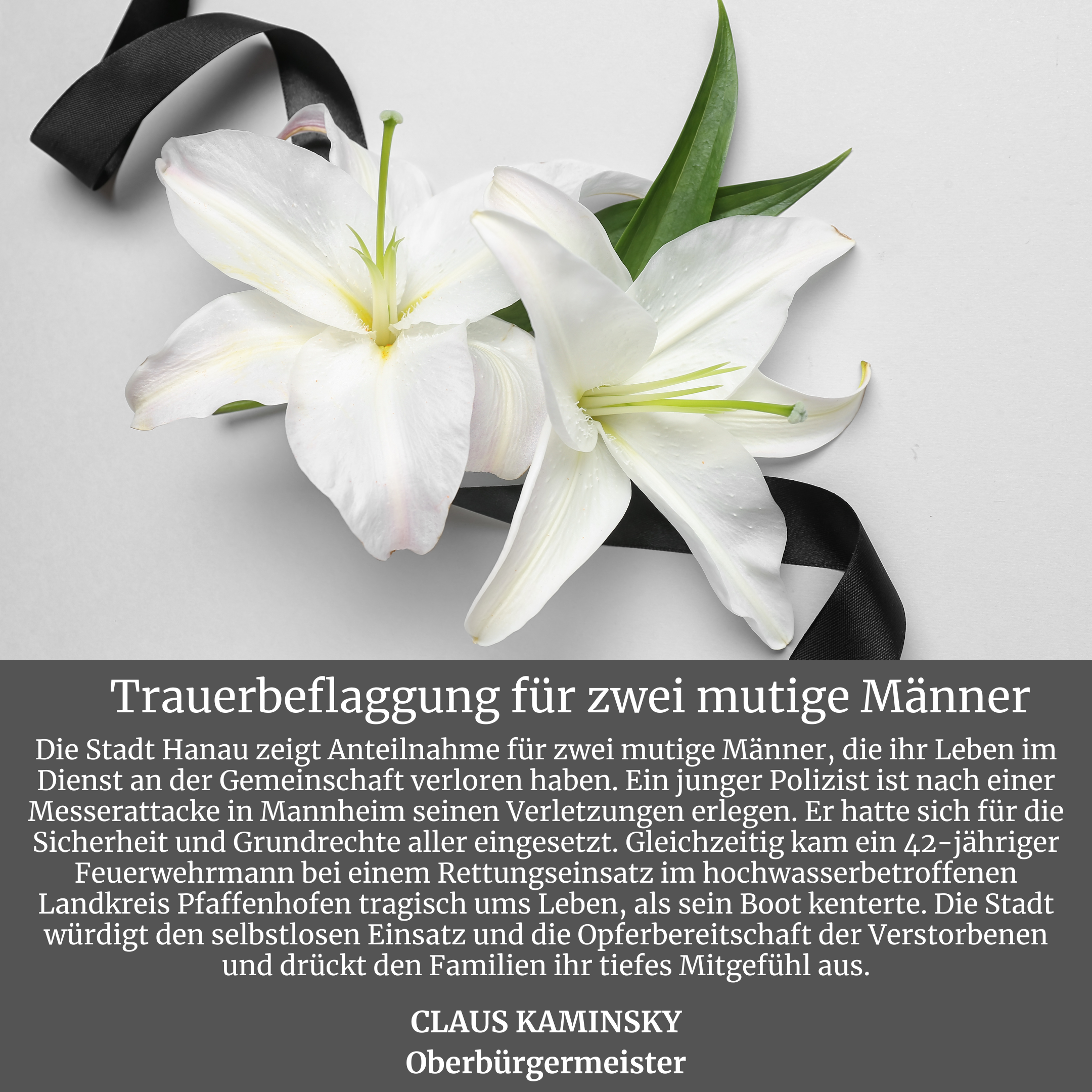 Wir werden den Tag und diese Gräueltaten niemals vergessen. Der 19. Februar wird als Gedenktag uns und die Stadtgesellschaft fortan immer daran erinnern, dass die Hanauerinnen und Hanauer für ein friedliches Miteinander zusammenstehen. Die stadtweite Trauerbeflaggung wird ein unübersehbares Zeichen dafür sein, dass wir in unserem Gedenken an der Seite der Angehörigen stehen.