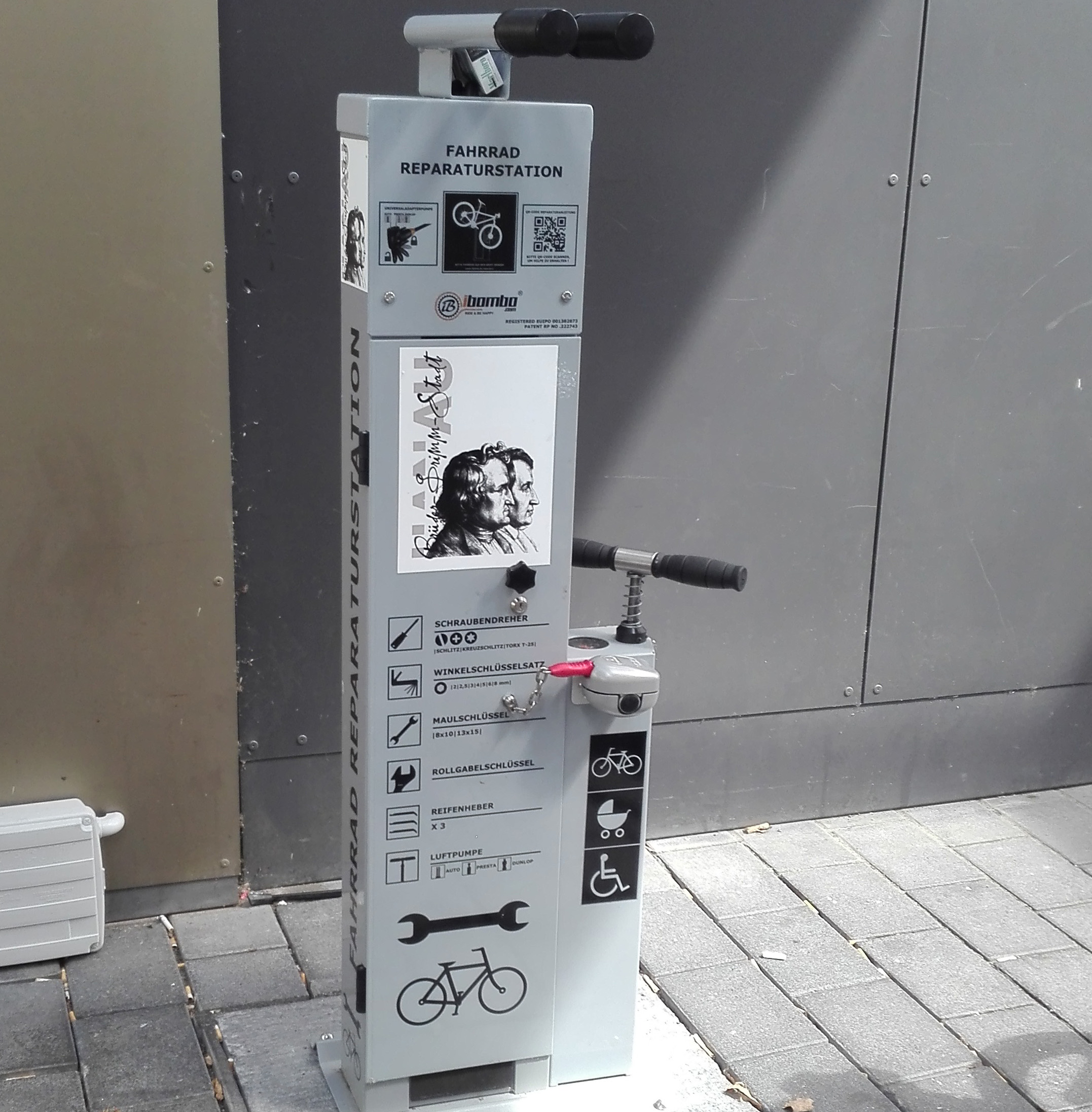 So funktioniert's: Münze oder Chip einwerfen (wie beim Einkaufswagen), dann beherzt an der Kette ziehen. Nach der Reparatur wieder verschließen, die Münze gibt's zurück.