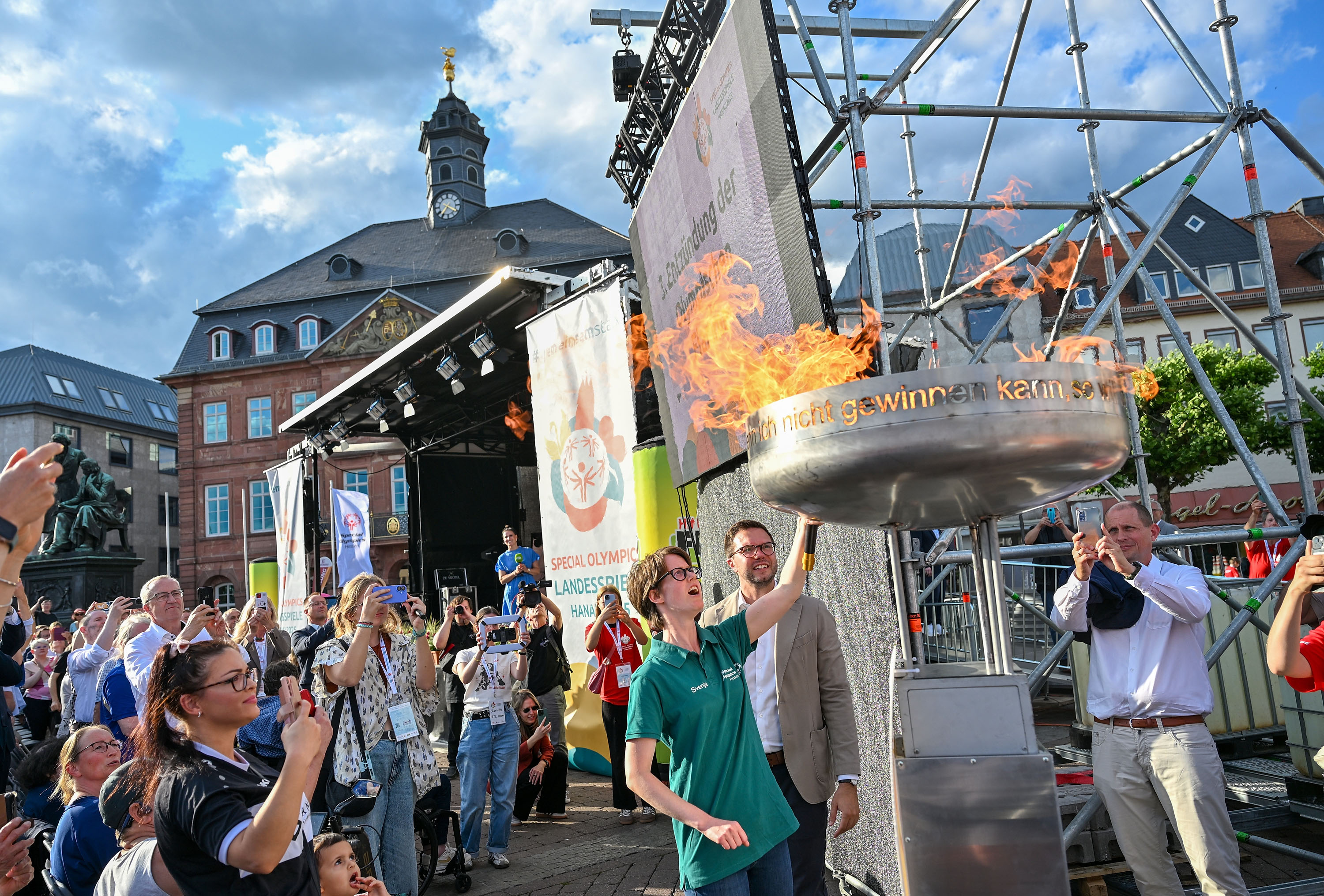 Die Eröffnungsveranstaltung auf dem Marktplatz am Montag war ein bewegender Auftakt der Landesspiele. Vor der Kulisse des Neustädter Rathauses versammelten sich rund 1.600 Gäste, die Tanzauftritte, Livemusik und Ansprachen aus Politik, Sport und Gesellschaft erlebten. Das olympische Feuer wurde entzündet, die olympische Flagge gehisst und die olympischen Eide gesprochen. Oberbürgermeister Kaminsky und die hessische Sportministerin Diana Stolz, gleichzeitig Schirmherrin der Landesspiele, begrüßten die Teilnehmenden und betonten die Bedeutung von Vielfalt und Teilhabe.