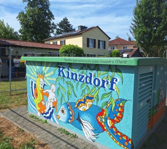 "Im Stadtteil Lamboy/Tümpelgarten haben wir viele verschiedene Kunstwerke. Etwa das Pumpstations-Häuschen am Kinzigdamm in Höhe der Sandelmühle, initiiert und bezuschusst von unserem Ortbeirat und ausgeführt von Rautie, die Lamboy-Brücke an der Kinzig, gestaltet vom Lamboy-Park, und die Nordbahnhof-Unterführung, initiiert von ‚Freunde und Förderer Lamboy-Tümpelgarten‘, gestaltet von ‚Hanau Radau‘", berichtet Ortsvorsteherin Rosemarie Thiel. Das neuste vom Ortsbeirat Lamboy/Tümpelgarten angestoßene Projekt wurde dieser Tage von fünf Mitgliedern der Senioren-Graffiti-Gruppe "Sprayground Old Robinson" mit Unterstützung von Künstlern des "Spray Café" in der Otto-Wels-Straße fertiggestellt. Das jüngste Hanau ART-Wandbild an einem Trafohäuschen der Stadtwerke heißt "Flora und Fauna" und bildet das Leben am Fluss ab: Eine Forelle fängt eine Fliege, während ein Eisvogel vorüber fliegt. Am Ufer nagt eine Nutria zwischen Scharfgarbe, Nelke und Hahnenfuß. Ein Frosch sitzt auf einer Seerose und eine Maus fährt in einem Kanu vorüber. Ein Igel wird von einer Eule beobachtet, während Pferd und Kuh in den Auen grasen. "Während der Arbeiten kamen wir mit Bewohnerinnen und Bewohnern sowie Passanten bei Kaffee und Kuchen ins Gespräch", berichtet Martin Hübscher, Graffiti-Künstler und Mitarbeiter im Familien- und Jugendzentrum Wolfgang, der diese und viele weitere Aktionen organisiert. Am gestrigen Donnerstagabend hatte der Ortsbeirat Lamboy/Tümpelgarten die Unterstützung des Projektes mit 1518,93 Euro beschlossen.