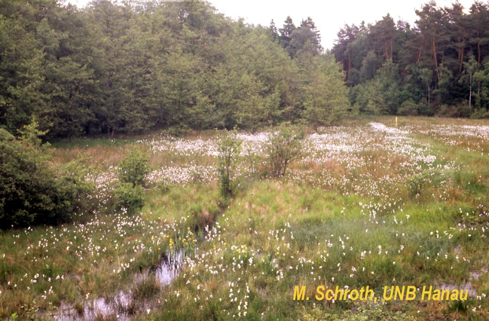 Auf einer ehemaligen Hochterrasse eines alten Mainverlaufes hat sich ein Flachmoor gebildet.