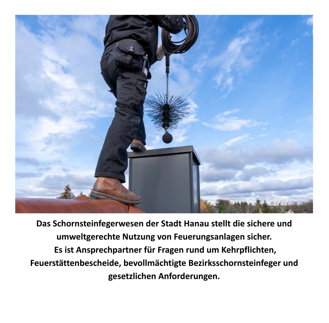 Das Schornsteinfegerwesen der Stadt Hanau sorgt dafür, dass Feuerungsanlagen sicher, umweltgerecht und gesetzeskonform betrieben werden.