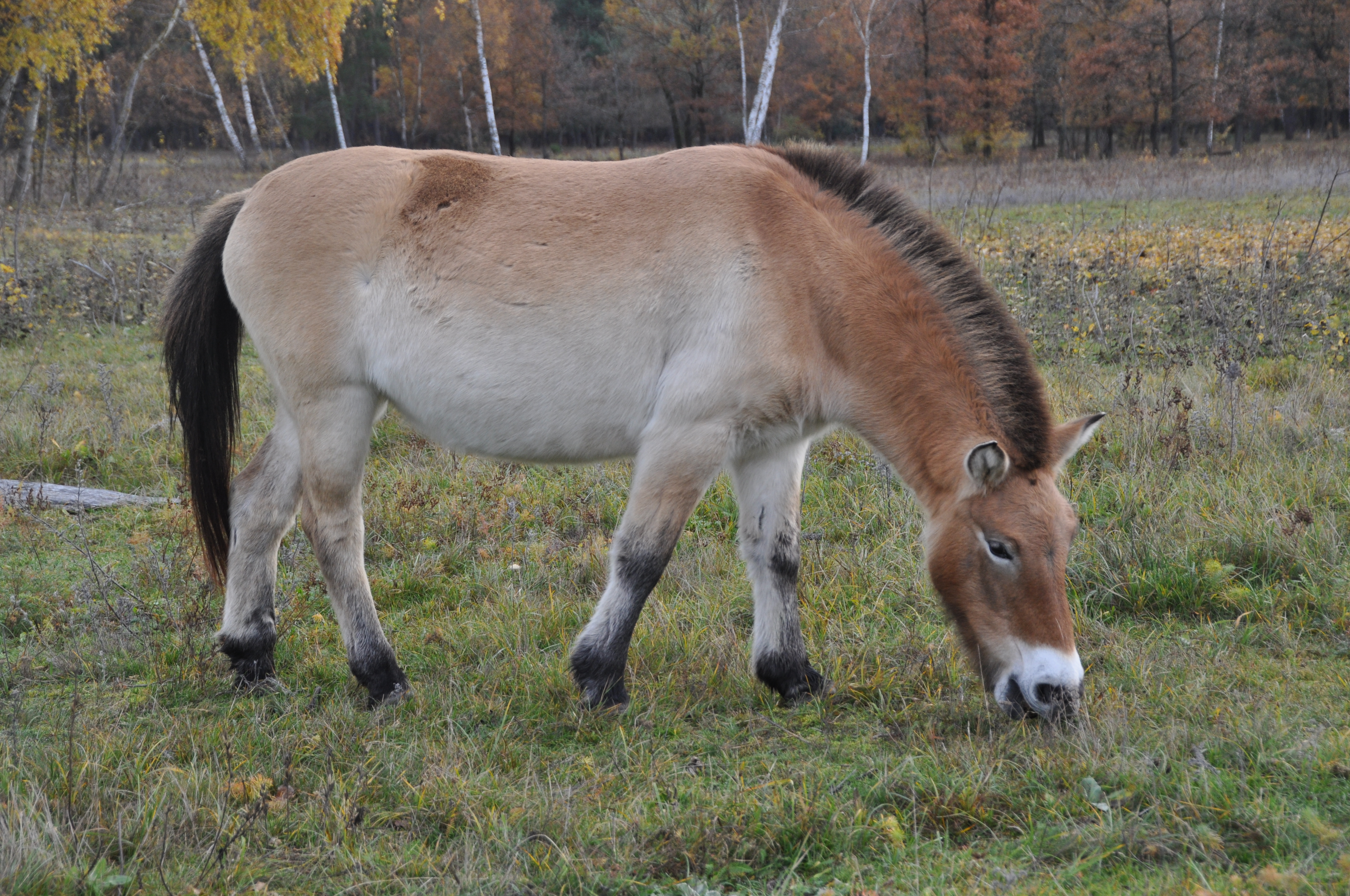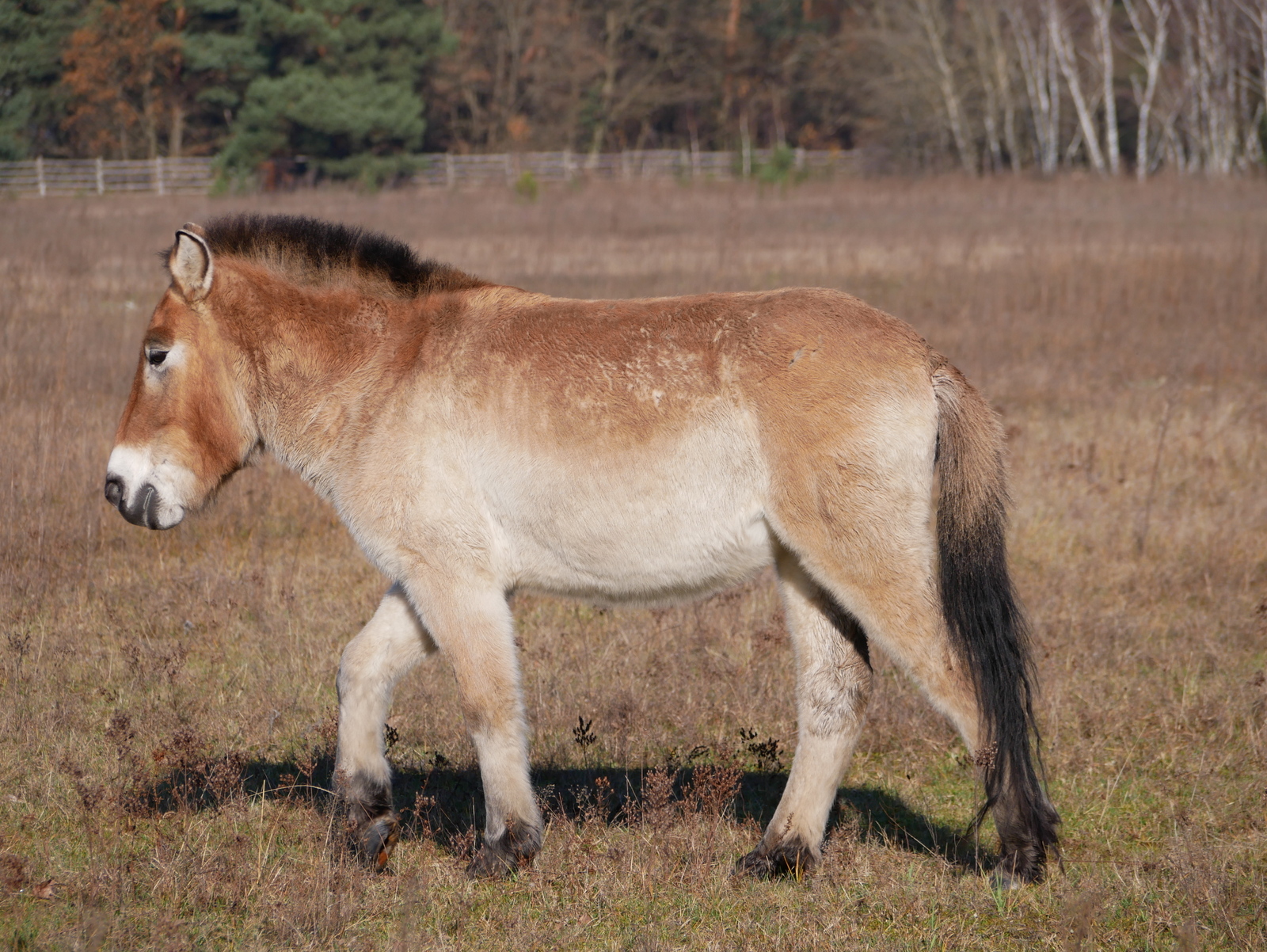Przewalski Wildpferde unterscheiden sich vor allem äußerlich von domestizierten Pferden: Sie wiegen nur etwa 200-300kg, also die Hälfte eines Hauspferdes, bei einer Schulterhöhe von 130-145cm. Darüber hinaus haben sie typische Merkmale, an denen man sie erkennen und von anderen Pferden unterscheiden kann: