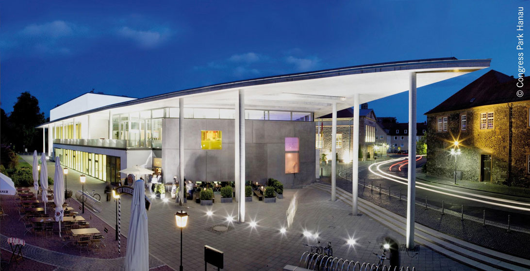 Eines der Highlights stellt der Congress Park Hanau im Veranstaltungsbereich dar (siehe Abbildung). Im Herzen der Innenstadt, mit eigener Tiefgarage und angrenzend an den Schlossgarten, findet man hier ideale Bedingungen vor. Lassen Sie sich überzeugen!